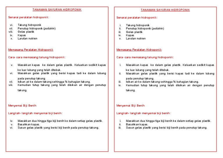Alatan Dan Bahan Menyemai Tanaman Hidroponik Worksheet